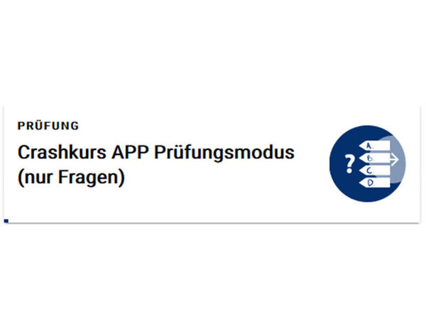 Im Prüfungskurs-Modus werden Ihnen nur Fragen (keine Wissenseinheiten) aller Kataloge in unbekannter Reihenfolge angezeigt.