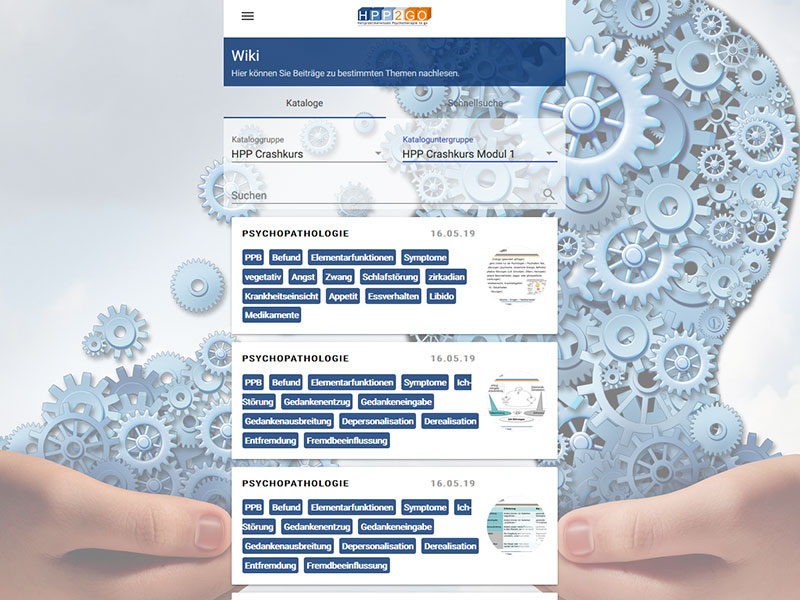 Die Wiki-Bibliothek-Funktion ist ein brandneues Feature und unumstrittener Vorteil der HPP2GO APP, denn Sie können dadurch auf Stichwortsuche gehen und relevante Wissenseinheiten aufrufen.