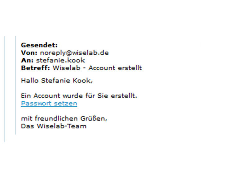 Für die Freischaltung erhalten Sie einen Link von wiselab, mit dem Sie sich Ihr persönliches Passwort setzen.